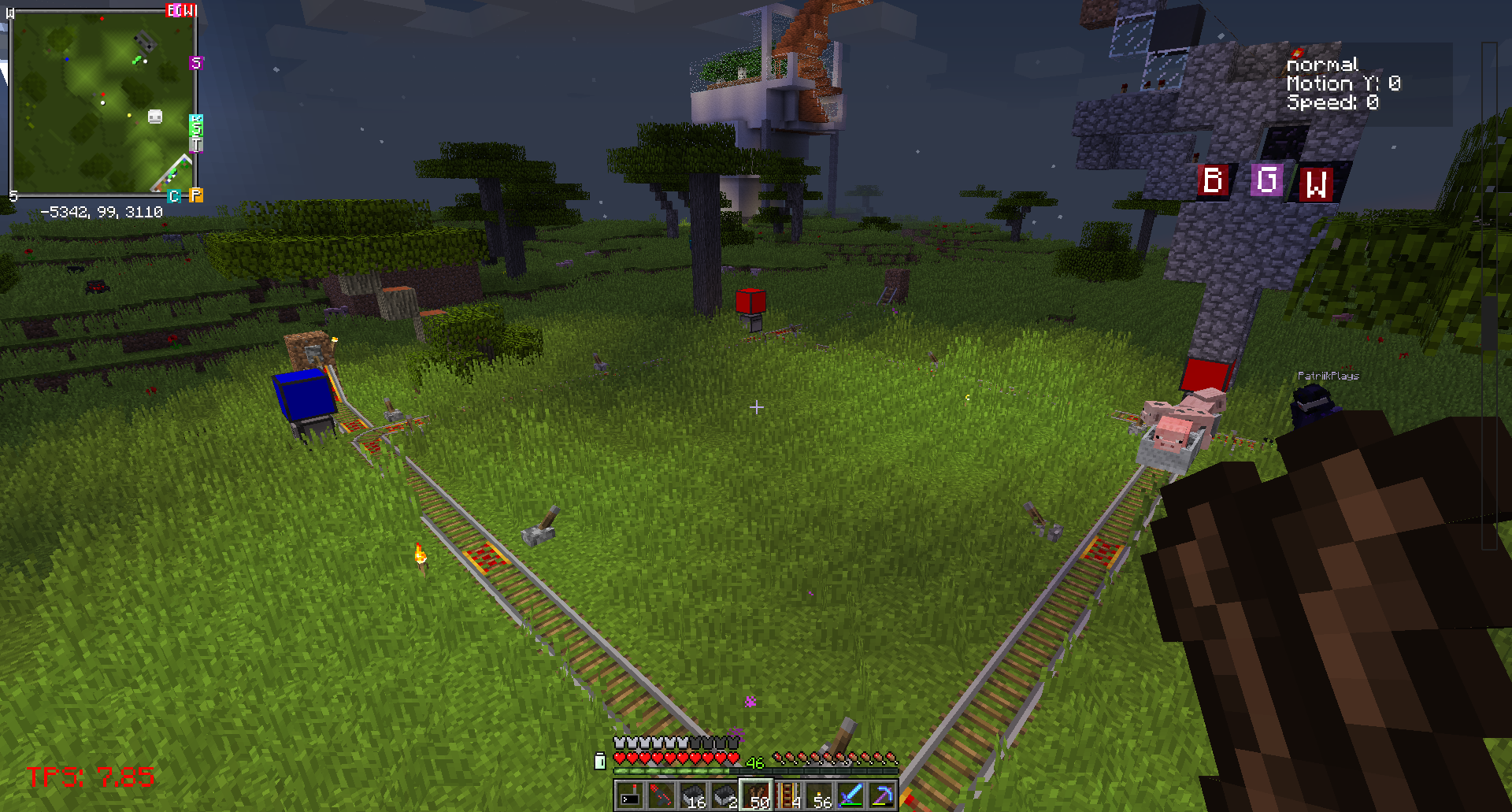 AutoRouted Rail uses turtles, entity sensors and a central coordination server accessed over websocket to automatically route minecarts to player-selected destinations. While some other implementations were based on computer minecarts, ARR uses passive tracks (using normal powered rails) and minecarts, but with computer-controlled switches using on-demand greedy routing, as well as smart stations to automatically dispense carts. While originally intended to run Chorus City's hypothetical public transit infrastructure, lack of a compelling usecase for public transit infrastructure, minor issues with station physical implementation and the lack of a clear way to generalize the routing sensibly to busy systems without highly redundant paths meant it has only ever been deployed for testing.