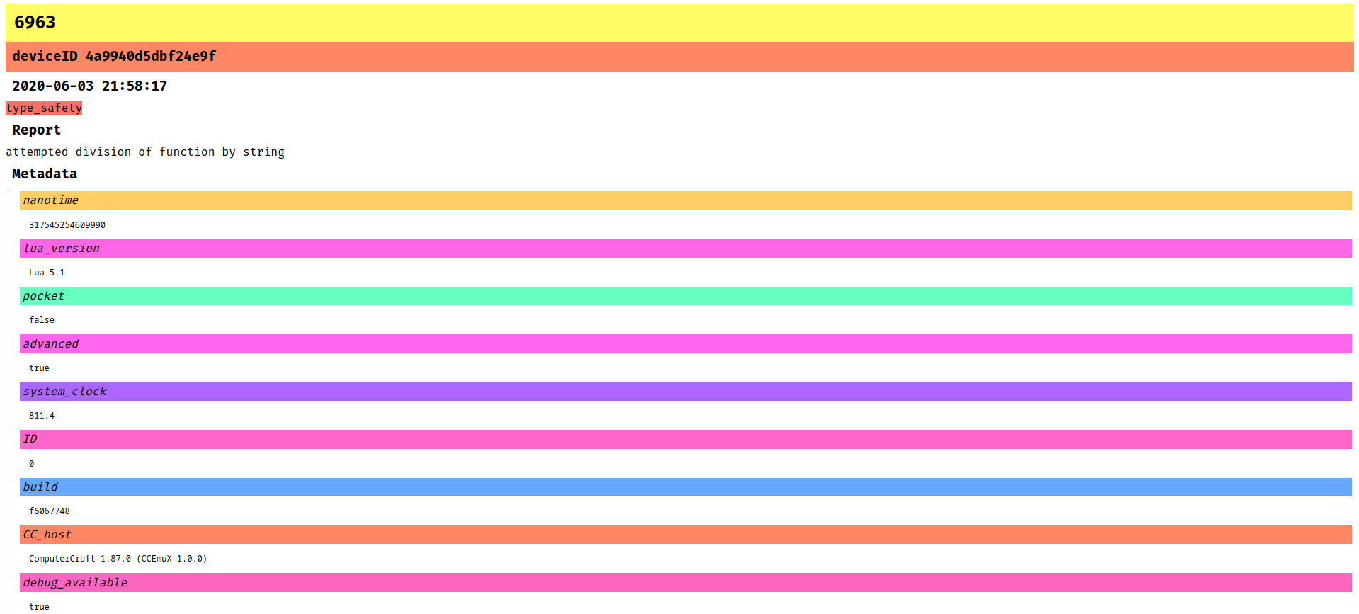 An example SPUDNET report of a Type Safety violation. Information about the host and the class of violation is logged.